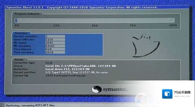 12、接下来开始GHOST恢复过程,恢复完成会重新启动电脑。
