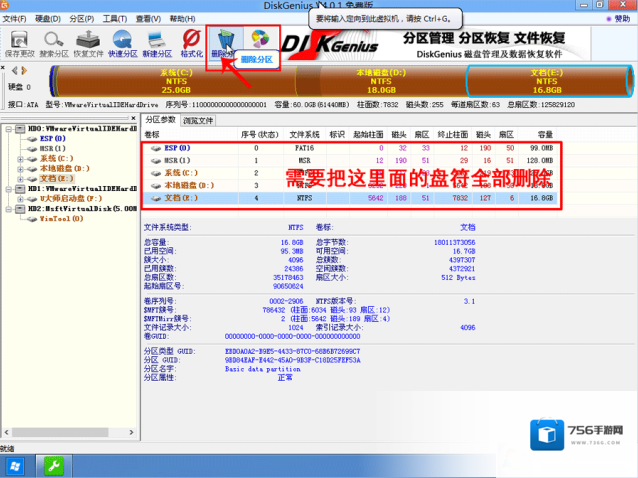 戴尔一体机Win10改Win7分区转换+装Win7:使用Diskgenius分区工具把GPT转换为MBR1、运行桌面上的diskgenius分区工具后,我们看到分盘卷有ESP跟MSR。