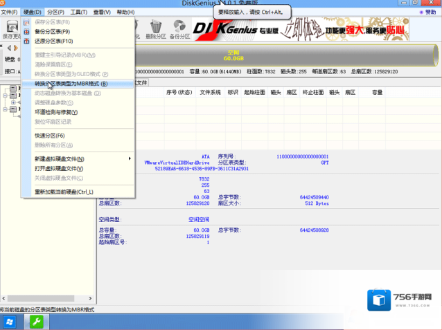 6、打开硬盘,点击“转换分区表类型为MBR格式”,如下图所示:(Win7系统之家www.winwin7.com)