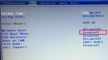 4、转到Main,选择F12 Boot Menu回车,设置为Enabled,按F10选择Yes回车保存修改,如下图所示;
