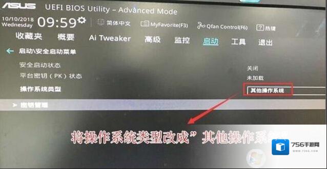 3、再返回到”安全启动菜单”的选项,将操作系统类型改成”其它操作系统”,如下图所示;