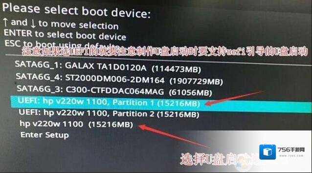 华硕H310主板安装Win7 U盘启动:插入U盘启动盘,重启按ESC选择识别到U盘启动项,回车;