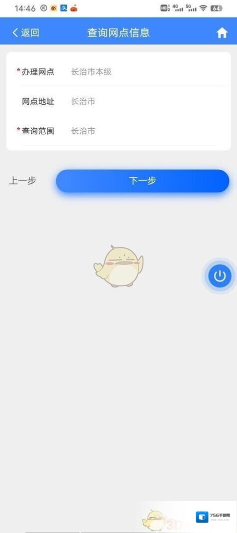 6、确认好办理网点、网点位置以及查询范围,点击下一步;