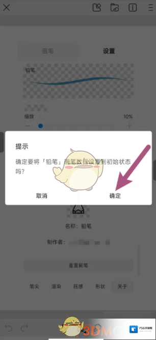用户只需进入绘画界面,点击“画笔”按钮,然后点击打开的窗口顶部的“设置”,接着点击底部菜单栏中的“关于”,选择“重置画笔”,在弹出的提示窗口中点击“确定”即可。这一操作能使用户快速恢复画笔的默认设置,便于重新调整画笔参数进行创作。