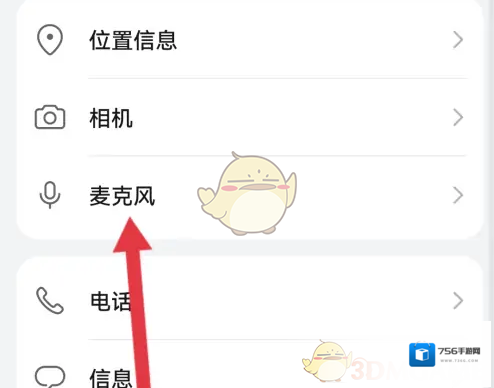 7、进入麦克风权限,然后把仅使用期间允许的按钮开启即可。