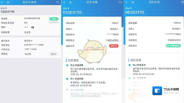 4、进入退款阶段,可查看退款进度,查看投标号详情,即可查看退款进度。