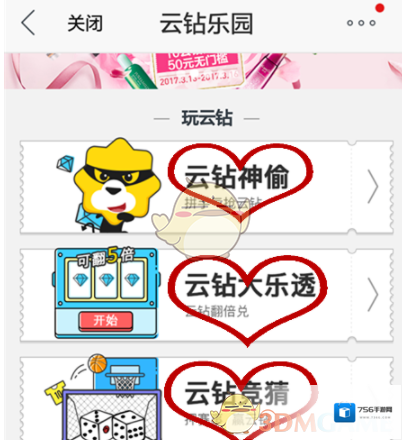6.点击页面下方的“云钻乐园”,有各种好玩的云钻小游戏;