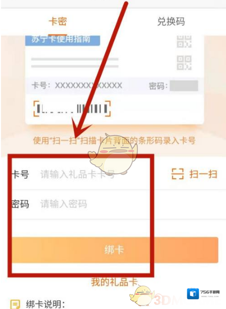 4、在页面正确编辑卡号密码,就可以绑定成功了,下单可以直接使用。