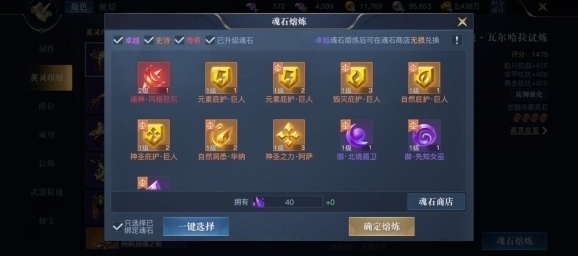 魂石共有紫、橙、红三种品质,每个装备部位都可以镶嵌四枚灵石。在单一装备镶嵌满四枚灵石后,根据镶嵌灵石的品质不同,可以额外触发不同的羁绊。