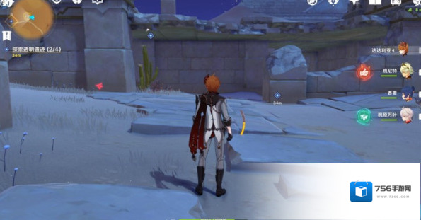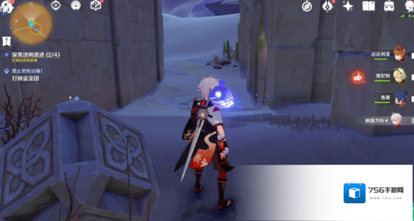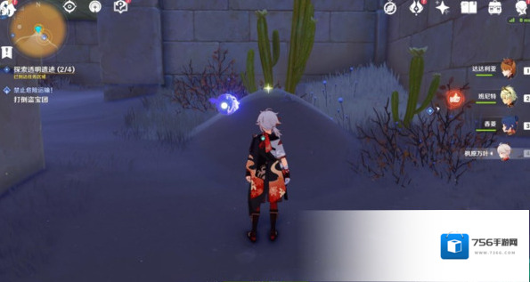 3.随后我们继续往前,开一处沙堆上前,我们利用万叶把沙子吹走,开启机关