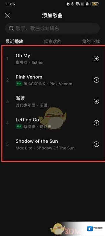 5、最后在添加歌曲的页面中点击你要添加的歌曲即可。