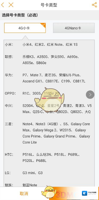 5、选择喜欢的卡号,以及卡的类型(现在手机多为小卡),选好后点击确认