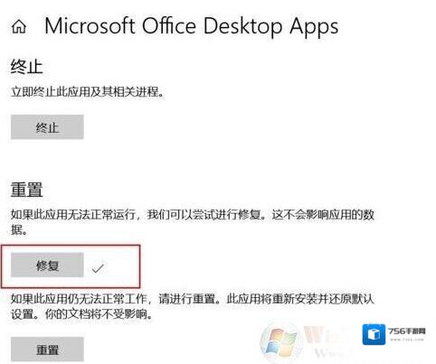 6、修复成功之后,修复这个按钮后面会有一个 对勾,这时我们再打开Office相关组件就是中文了。