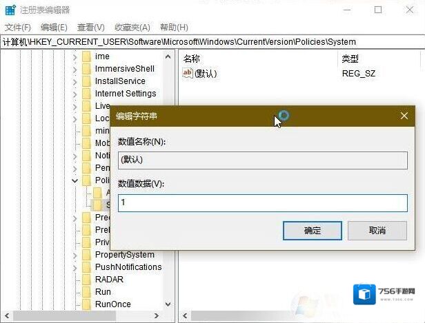 1、先打开注册表按下Win+R组合键后,在“运行”框中输入REGEDIT并回车,启动注册表编辑器。2、在注册表编辑器中,依次定位到“HKEY_CURRENT_USERSoftwareMicrosoftWindowsCurrentVersionPoliciesSystem”(图5)。