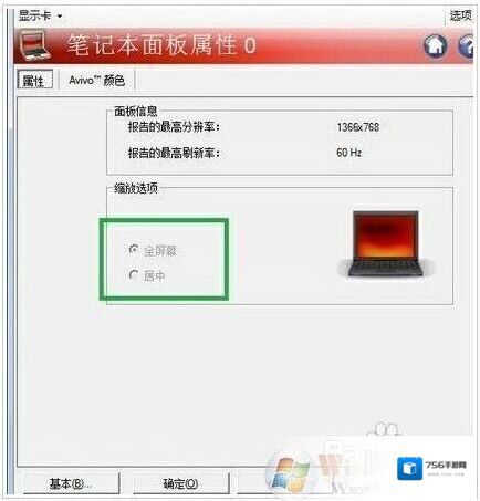 3)将“缩放选项”下的“保持纵横比”改为“全屏幕”,点击“确定”按钮后,再次进入屏幕分辨率设置界面,将分辨率设置为您屏幕的正常分辨率(例如1366×768或者1440*900等)即可。