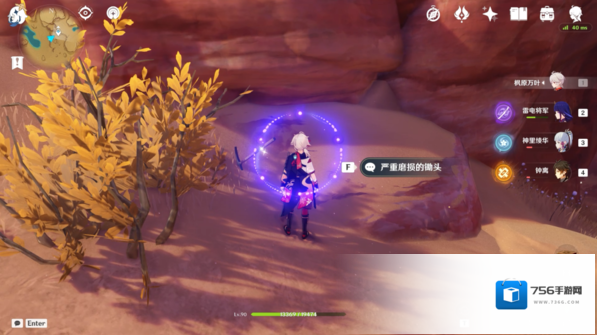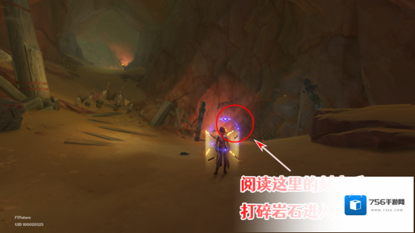 从入口下去之后我们把视角往西边看,面前有一块石头挡住了我们的路,这同样需要使用双手剑角色攻击将其破坏。