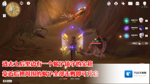 进去时候可以看到里边有一个宝箱,靠近宝箱,击败附近出现的全部毒蝎后,即可开启这个宝箱。
