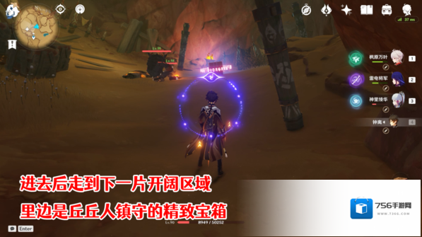 进去沿路一直往里走,到下一片开阔区域后可以看到有丘丘人镇守的精致宝箱,这里我们同样清一下敌人,把宝箱拿上。