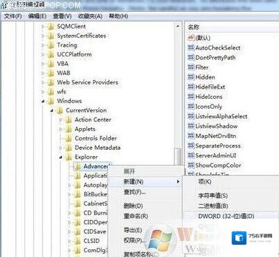 PS:关闭系统提示音并不影响电脑播放多媒体文件的声音,大可不必担心。 7. 工具栏优化 Windows 7的工具栏预览功能是一项非常酷的功能,让很多用户爱不释手,但是对于一些机器配置较低的用户来说,这可是不太好用,我自己机器配置就不高深有感受。直接关闭了工具栏的预览功能总有点不舍,怎么说这也是Windows 7的象征呀,但要使用预览每次都需要等待很长时间,真的让人头疼。如果你的机器也真的不是那么流畅,那么我们可以试着将窗口的预览时间缩短,以此来加快预览速度。 在Windows开始菜单中的搜索栏中输入“regedit”打开注册表编辑器,然后仔细找到HKEY_CURRENT_USER/Software/Microsoft/Windows/CurrentVersion/Explorer/Advanced文件夹,右键点击该文件夹选择“新建DWORD值”然后将其命名为“ThumbnailLivePreviewHoverTime”。