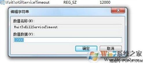 接下来就去找到HKEY_LOCAL_MACHINE/SYSTEM/CurrentControlSet/Control一项打开,可以发现其中有一项“WaitToKillServiceTimeOut”,鼠标右键点击修改可以看到Windows 7默认数值是12000(代表12秒),这里可以把这个数值适当修改低一些,比如5秒或是7秒。
