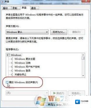 当然如果是对于整天丢三落四的用户来说,这项优化措施还是直接跳过吧,因为Windows 7的这项服务提高了搜索索引的效率可以节省搜索文件时的大量时间,自己找不到所放文件的位置时还是得靠它才快。 6. 关闭系统声音 仔细想想系统提示音你真的需要吗?我想对于大多数像小编一样的办公一族来说,上班时反正不能让机器随便出声影响到其他人,还不如彻底将系统提示音关闭释放点系统资源出来更实在。依然是在控制面板中去找到“声音”选项打开,然后在声音控制标签中去掉Windows 7系统默认勾选的“播放Windows启动声音”项即可。