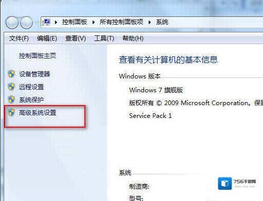第二步:在弹出的窗口中选择“高级系统设置”点击进去