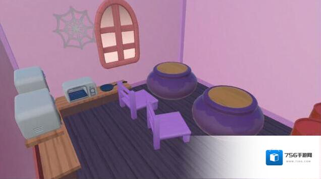 二层卧室灰扑扑的窗户挂着蜘蛛网,角落的大缸落满灰尘,还没开封的油桶堆积一旁,反而是快捷的微波炉与平底锅成为使用率最高的厨具。食物香气犹存,满满当当的厨房成为蛋仔们藏身的好地方。