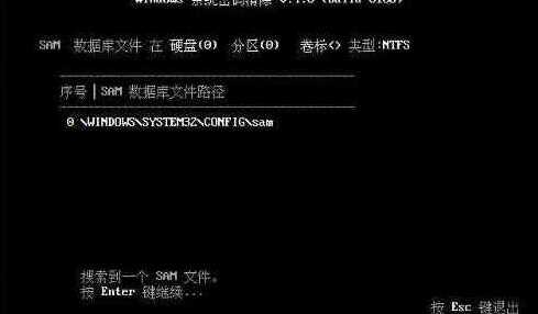7、我们选择系统所在分区,一般为0分区,按确定工具会自动搜索sam文件,结果如下;
