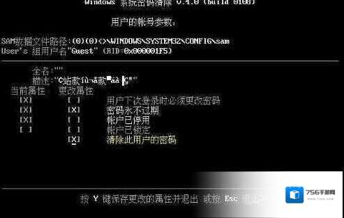 9、如上所示,我们选中 我们要清除的帐户,然后回车,选对清除密码,按Y键就开如清除操作;