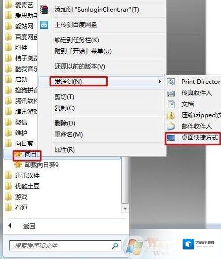 5、选择程序图标右键—–发送到—–桌面快捷方式