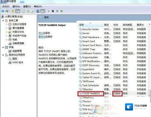 4、在右侧的服务列表中找到TCP/IP NetBIOS Helper这个服务,在状态栏中查看下是否已开启。下图表示未开启。