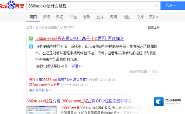 5、将占用内存最高的进程名记录下来到百度搜索是什么进程是否可以关闭,小便以360se.exe为例