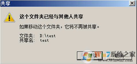 1、复制和移动对共享权限的影响当共享文件夹被复制到另一位置后,原文件夹的共享状态不会受到影响,复制产生的新文件夹不会具备原有的共享设置。当共享文件夹被移动到另一位置时,将出现如图所示的对话框,提示移动后的文件夹将失去原有的共享设置。