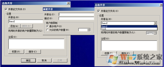 单击该选项卡中的“高级共享”按钮,将出现 “高级共享”对话框,单击“添加” ,除了可以设置新的共享名外还可以为其设置相应的描述、访问用户数量限制和共享权限。