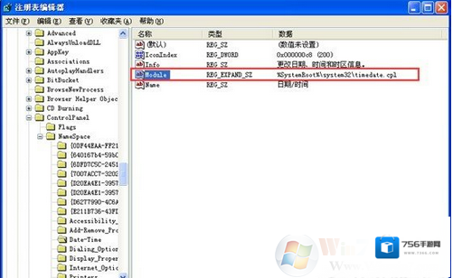 2、打开“编辑字符串”对话框.如图所示.其“数值数据”的值为“%SYSTEROOT%SYSTEM32TEMEDATE.CPL”就是原系统时间日期程序的动态库。从其他电脑中复制该文件,路径为c:windowssyste32timedate.cpl然后将本机的cpl文件替换掉即可。