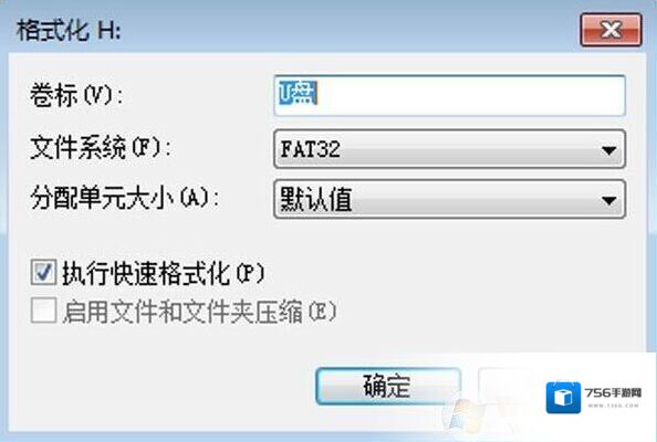 ③然后在弹出的窗口下勾选“执行快速格式化”,之后点“确定”即可强行格式化。如下图所示: