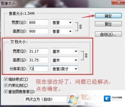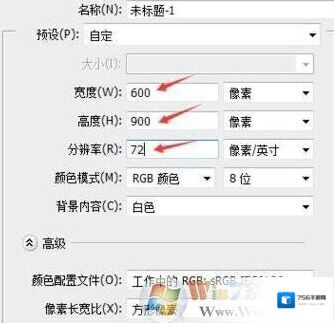 4、我们新建一个与之前宽度和高度一样的,然后将分辨率设置为72,点击确定;