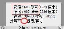 3、图片分辨率过大,导致正常字体大小的问题无法看到,先查看此图的图像信息,记住宽高像素值,宽600像素,高900像素,分辨率却只有1;