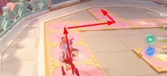 7、最后随着箭头位置能够来到终点处能够在不重复的情况下激活所有的魔术踏板。