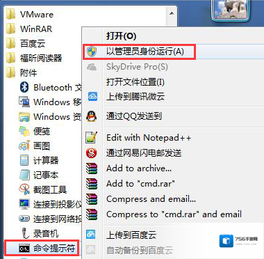 1、单击“开始”—“所有程序”—“附件”—“命令提示符”在“命令提示符”上点击鼠标右键,选择 “以管理员身份运行”;