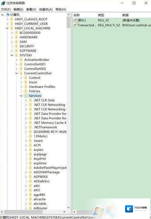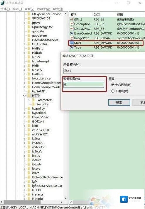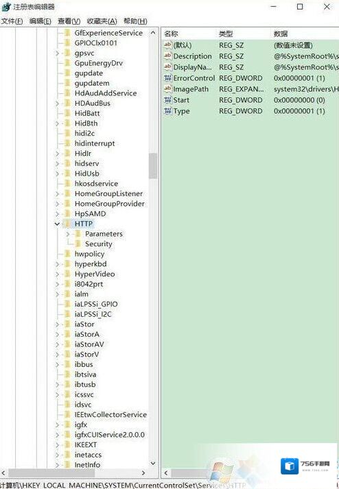 6、在左边依次将其展开(HKEY_LOCAL_MACHINE/SYSTEM/CurrentControlSet/Services/HTTP);