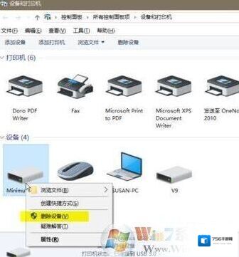 2、在弹出的设备框中单击“打开设备和打印机”,如上图;3、找到你的移动硬盘/U盘,右键单击,删除设备,应该能听见设备移除的声音;