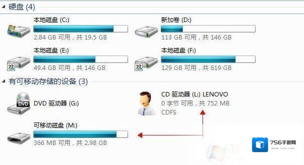 步骤四:U盘读不出来(U盘驱动问题)USB鼠标正常,U盘正常,但是插入无反应找不到可移动磁盘。