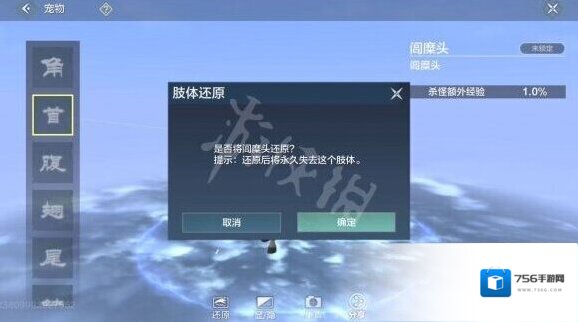 如果误点的话可以在宠物的部件肢体界面处点击还原,可以还原到记录的上一次该部件外形,还原后还能再继续往前还原一次哦。
