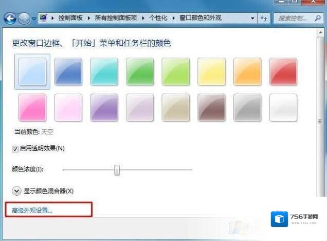 3、然后我们再点击如下图所示的“高级外观设置”;