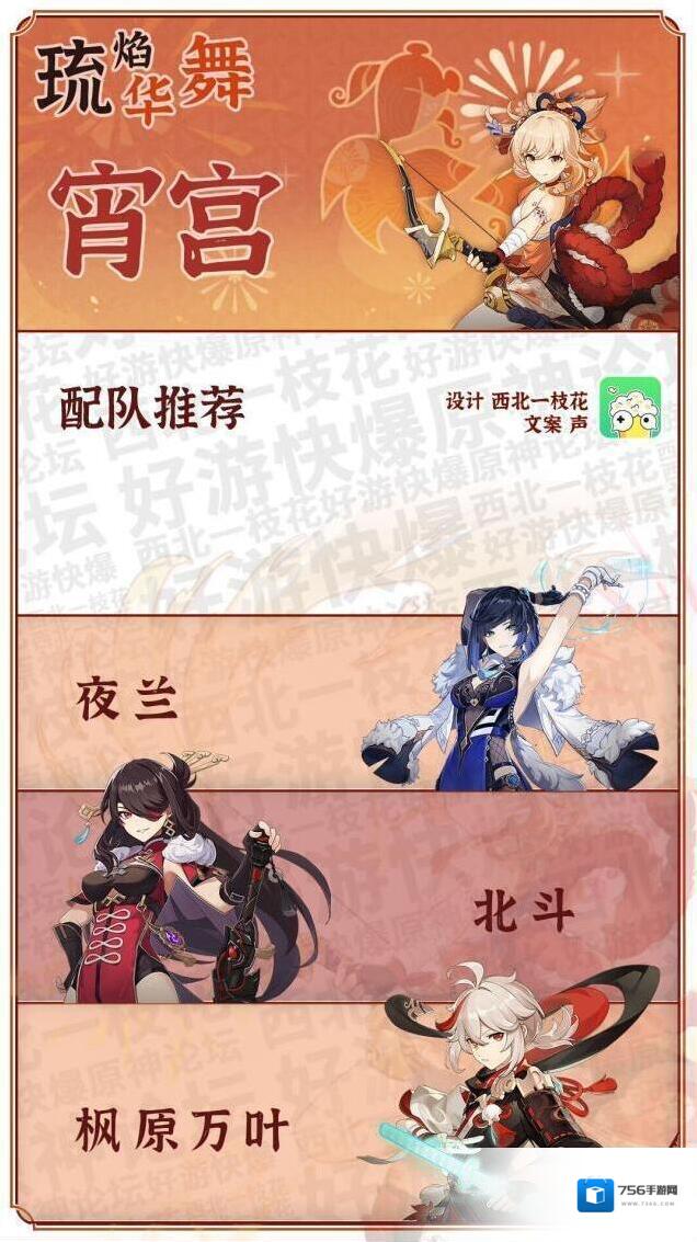 重点在于宵宫厨们,因为宵宫对单就要依赖反应aoe技能聚怪来补缺口。恰恰用万叶和北斗来补。北斗大招的免伤与弹反也可以保证一定的生存能力也是个不错的配队。