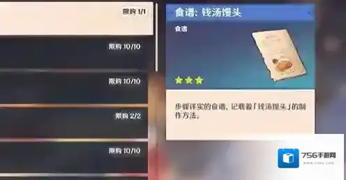 5、花费一定的金币购买,即可获得钱汤馒头食谱。