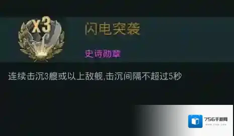 难度最大的应该是史诗勋章了,每一个勋章的达成条件都比较难实现,特别是闪电突袭,要连续击毁3艘敌舰,间隔还不能超过5秒……