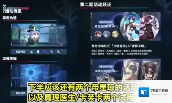 活动和任务奖励:假设下半还剩两个带星琼的活动,也就是异宠拾遗和虚境味探,各500星琼。还有真理医生和卡芙卡的角色试用,共40星琼。