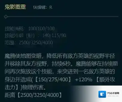 1、效果:向指定方向投掷暗影之刃,对路径上的敌人造成物理伤害,并留下一条持续5秒的影径。